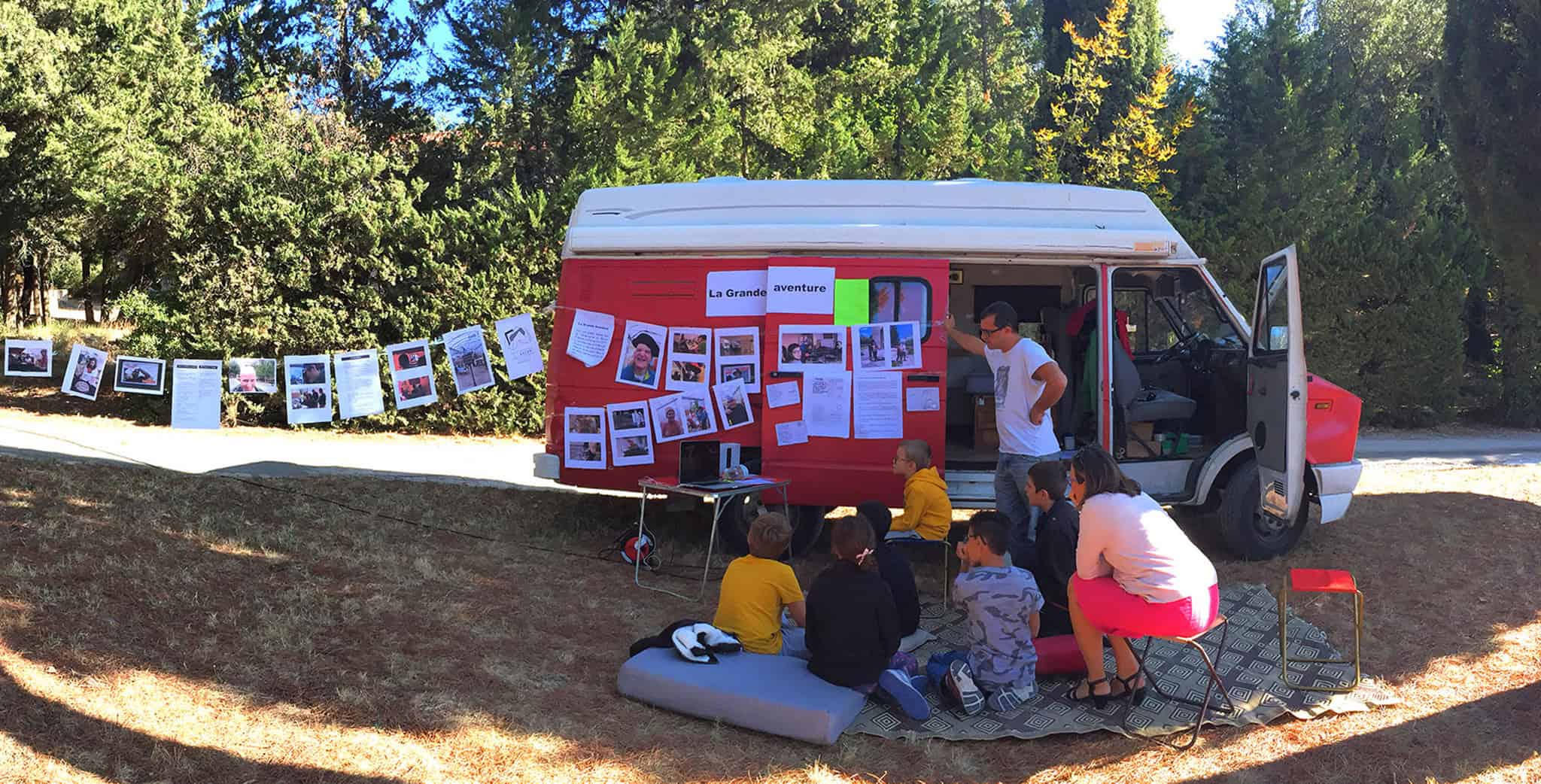L’équipe du Bazar palace, constituée par Constance Biazotto, metteur en scène de la compagnie, était constituée d’une comédienne, d’un plasticien/constructeur, d’une réalisatrice sonore, et d’un réalisateur de films qui se connaissaient peu. Ils ont dérivé dans un camion rouge et ont tenté d’établir le contact entre eux et : les centres pour autistes la Frégate à Toulon et Valbonne à Cabasse, le centre Olbia de Hyères qui accueille des handicapés moteurs avec ou sans troubles associés,